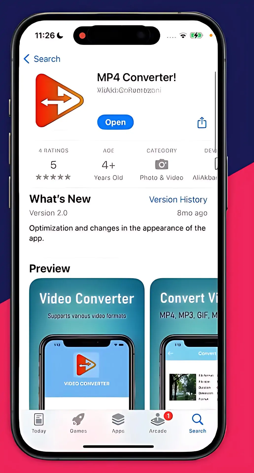 - Otevřete App Store a do vyhledávacího řádku zadejte „MP4 converter“.