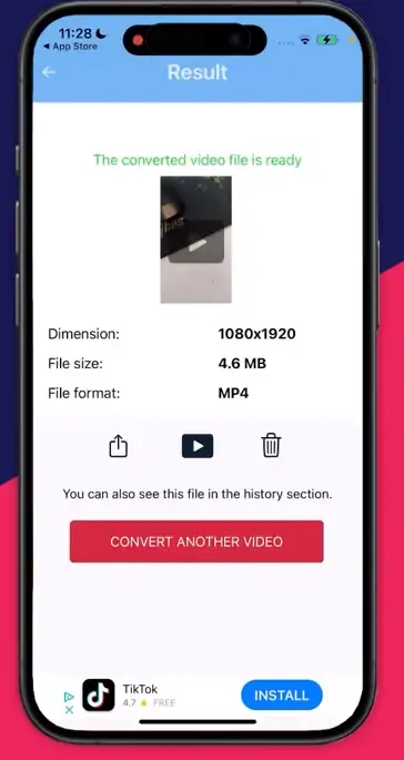 - Jakmile AhaConvert dokončí, můžete k souboru MP4 přistupovat z fotogalerie.