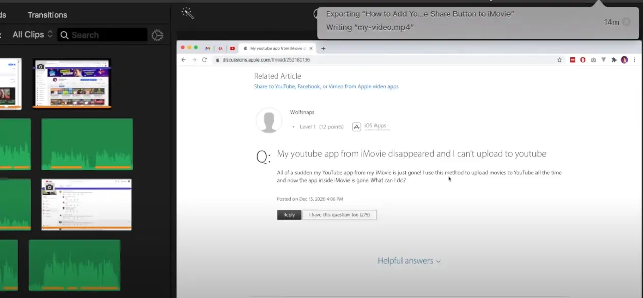 Počkejte, až iMovie dokončí export filmu do formátu MP4. Průběh exportu uvidíte v malém kroužku, který se zobrazí vedle ikony sdílení. Kromě toho se zobrazí podrobnosti o tom, co se s videem děje, například „zapisuje se moje video .mp4“. To je jasný indikátor, že aplikace mění iMovie na MP4.