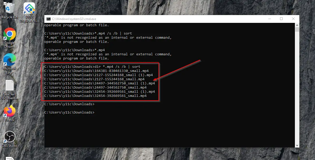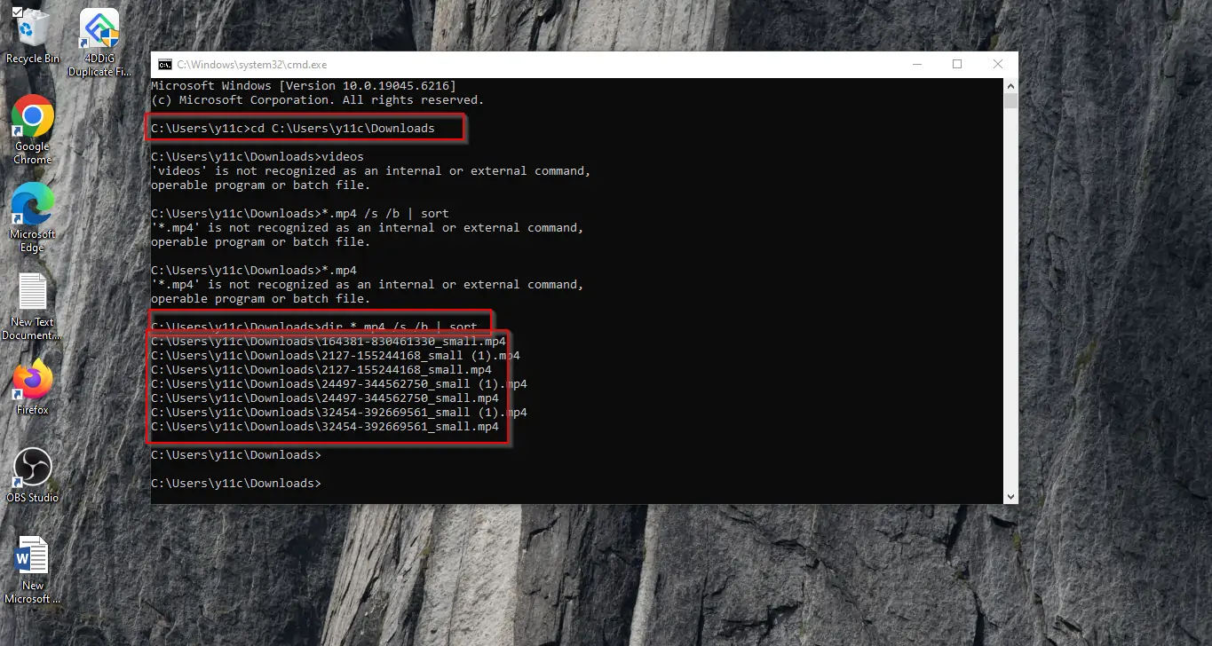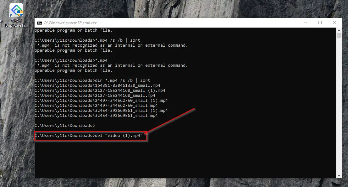สำหรับผู้ใช้ที่คุ้นเคยกับเครื่องมือขั้นสูง Command Prompt มอบวิธีที่รวดเร็วในการค้นหาและจัดการไฟล์ MP4 ที่ซ้ำกันโดยไม่ต้องใช้ซอฟต์แวร์เพิ่มเติม แม้ว่าวิธีนี้จะมีประสิทธิภาพ แต่ก็ต้องระมัดระวัง เนื่องจากการลบไฟล์ที่ไม่ถูกต้องโดยไม่ได้ตั้งใจอาจเกิดขึ้นได้
