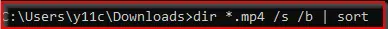 ป้อนคำสั่งต่อไปนี้เพื่อแสดงไฟล์ MP4 ทุกไฟล์ในโฟลเดอร์: