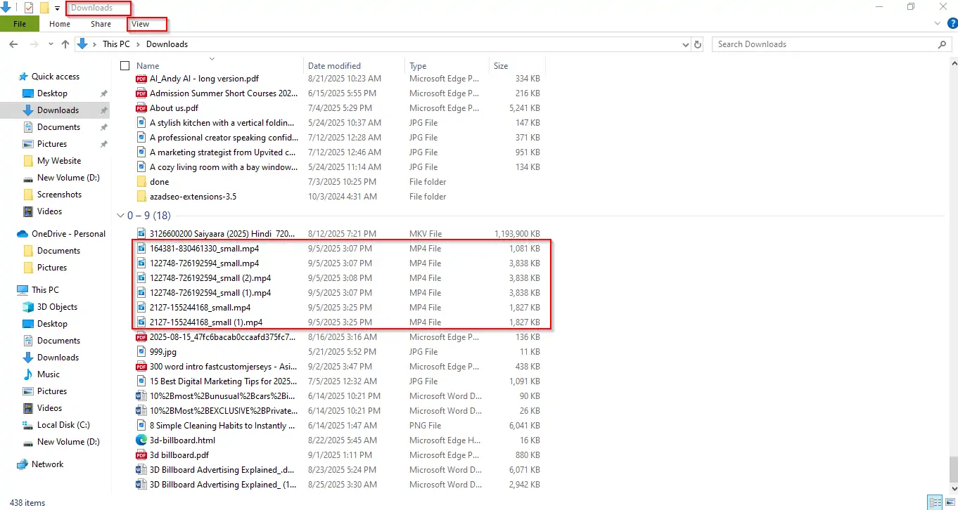 2. จัดเรียงไฟล์ตาม ชื่อ หรือ ขนาดไฟล์ MP4 ที่ซ้ำกันมักจะมีชื่อเดียวกันโดยมี “(1), (2)” เพิ่มเข้ามา