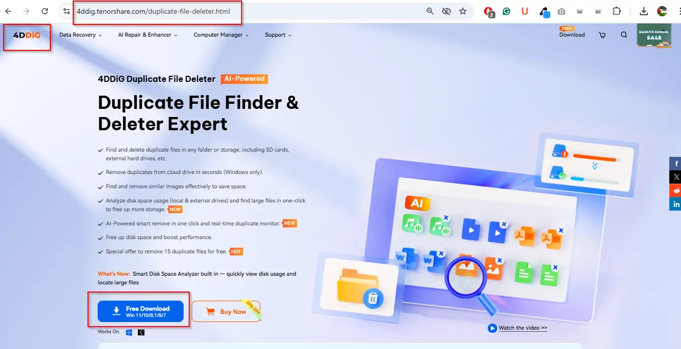 - ไปที่ เว็บไซต์ 4DDiG Duplicate File Deleter